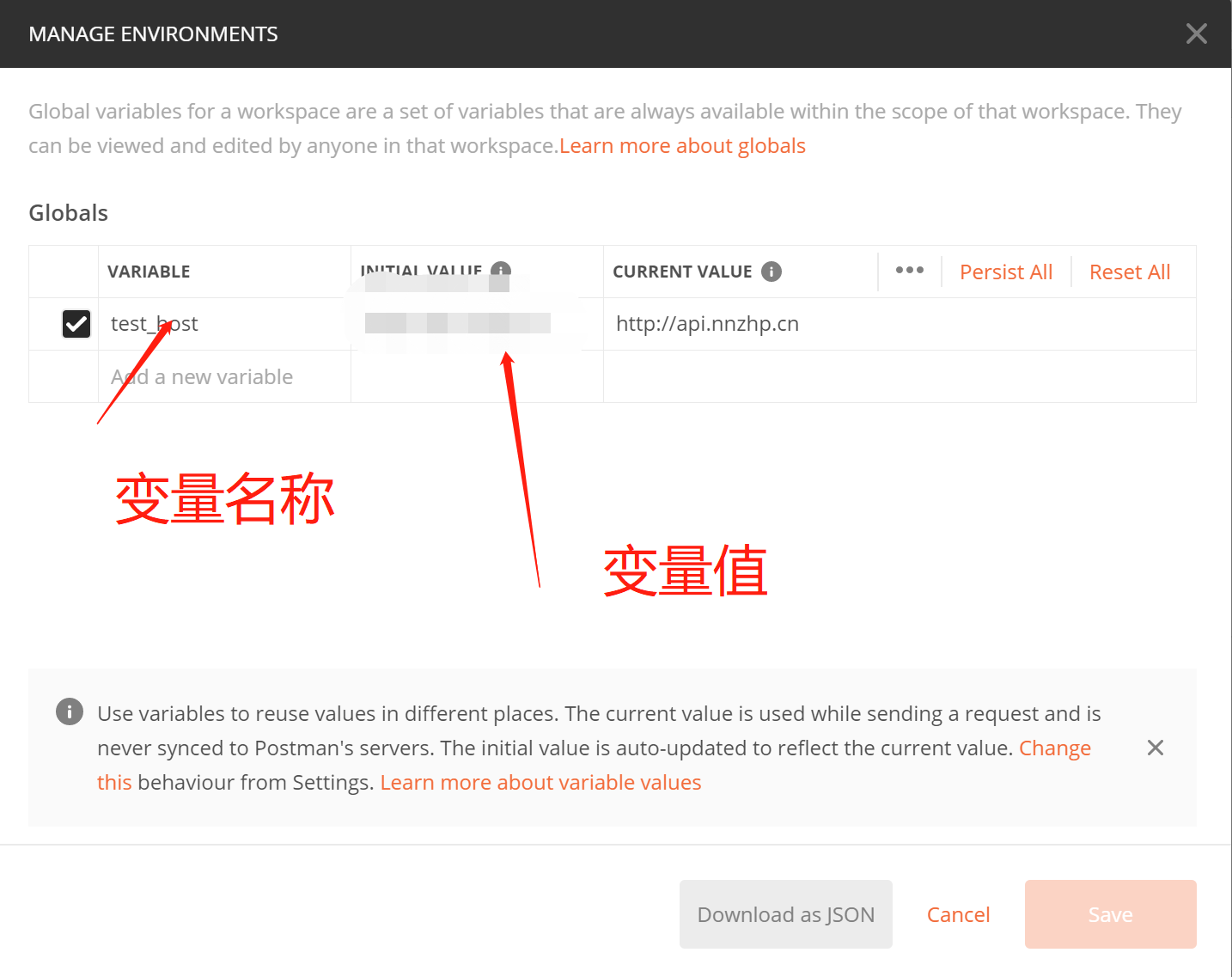 当存在多个接口使用同一个域名,或者多个接口使用同样的字段等情况,可以将通用部分提取出来定义为变量,然后进行引用