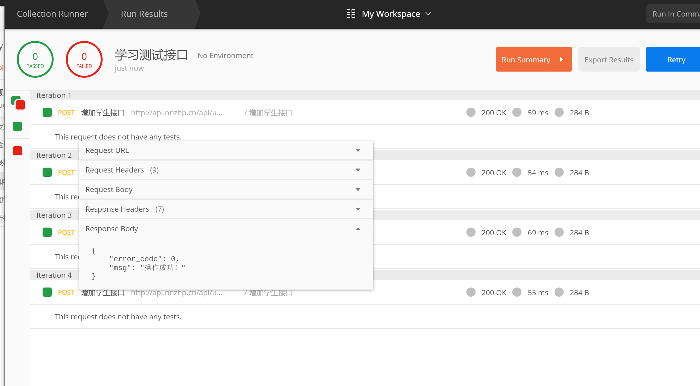 结果页面:可以通过·查询学生接口验证是否添加成功