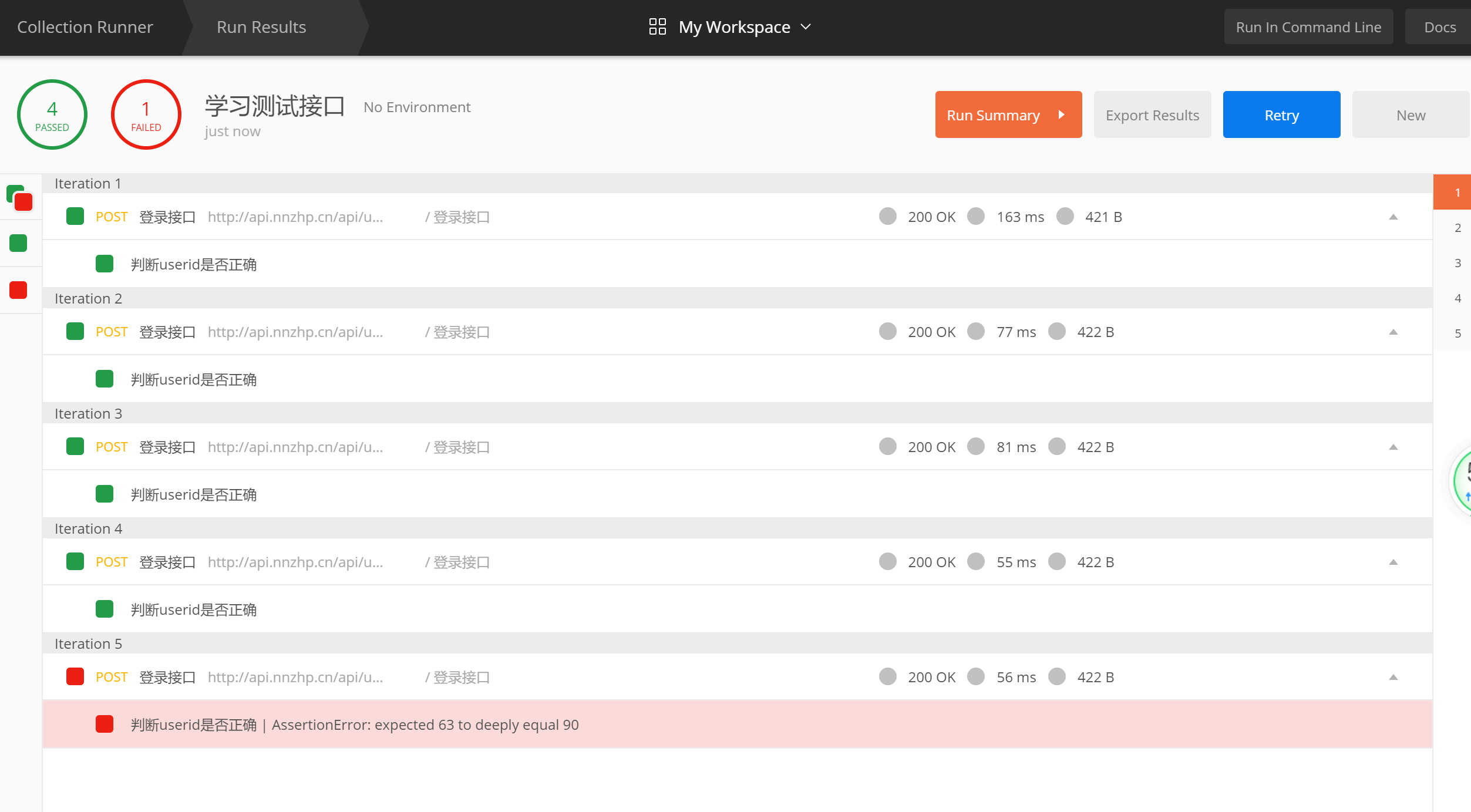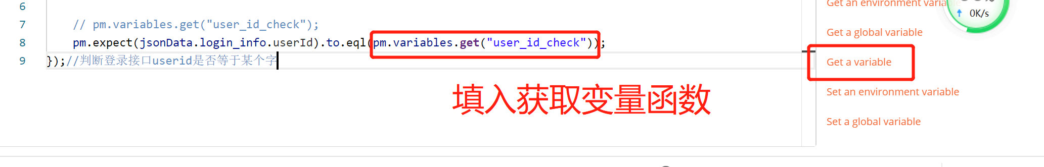 变量引用: pm.variables.get("user_id_check"); 括号内填入 文件设置的字段名称 用作引用,然后进行批量运行函数1 即可得到结果