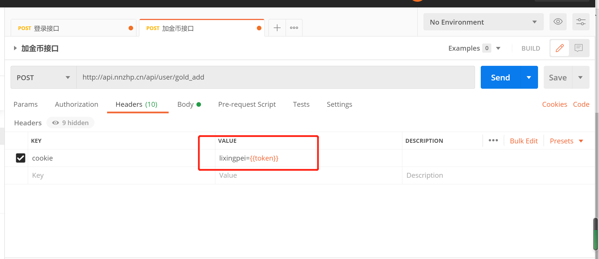 补充:相互关联型接口测试,例如金币重置接口需要在登录情况下 ,获取到登录的cookie, 登录的cookie在登录接口调用后返回,这时就需要获取到登录接口返回的数据,去到cookie(sign)然后定义为全局变量,供增加金币接口调用,具体如下:
