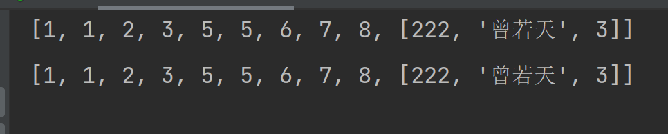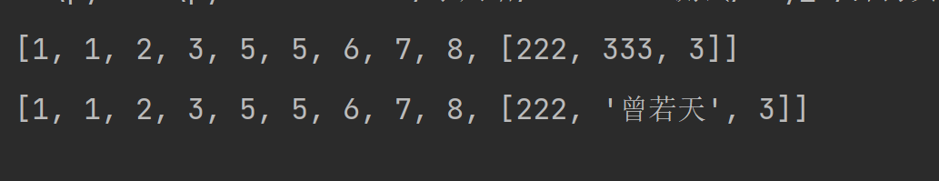 l = [1, 1, 2, 3, 5, 5, 6, 7, 8,[222,333,3]]