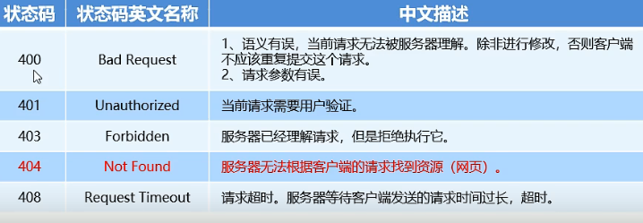 4*范围的状态码,表示客户端的请求有非法内容,从而导致这次请求失败。常见的4**类型的状态码如下: