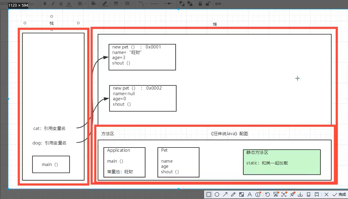 堆: 一般存放具体的对象 堆有一片特殊的方法区