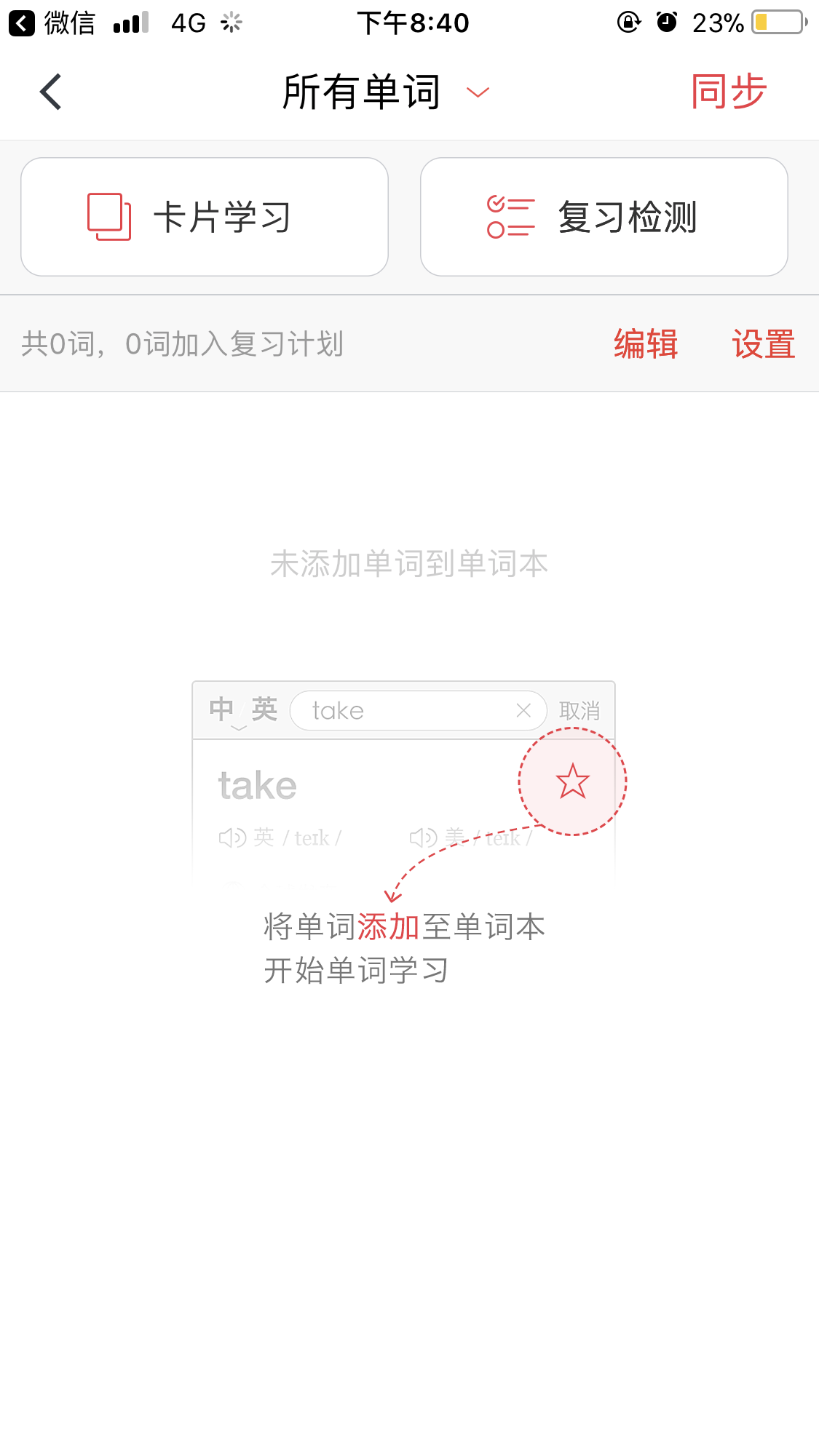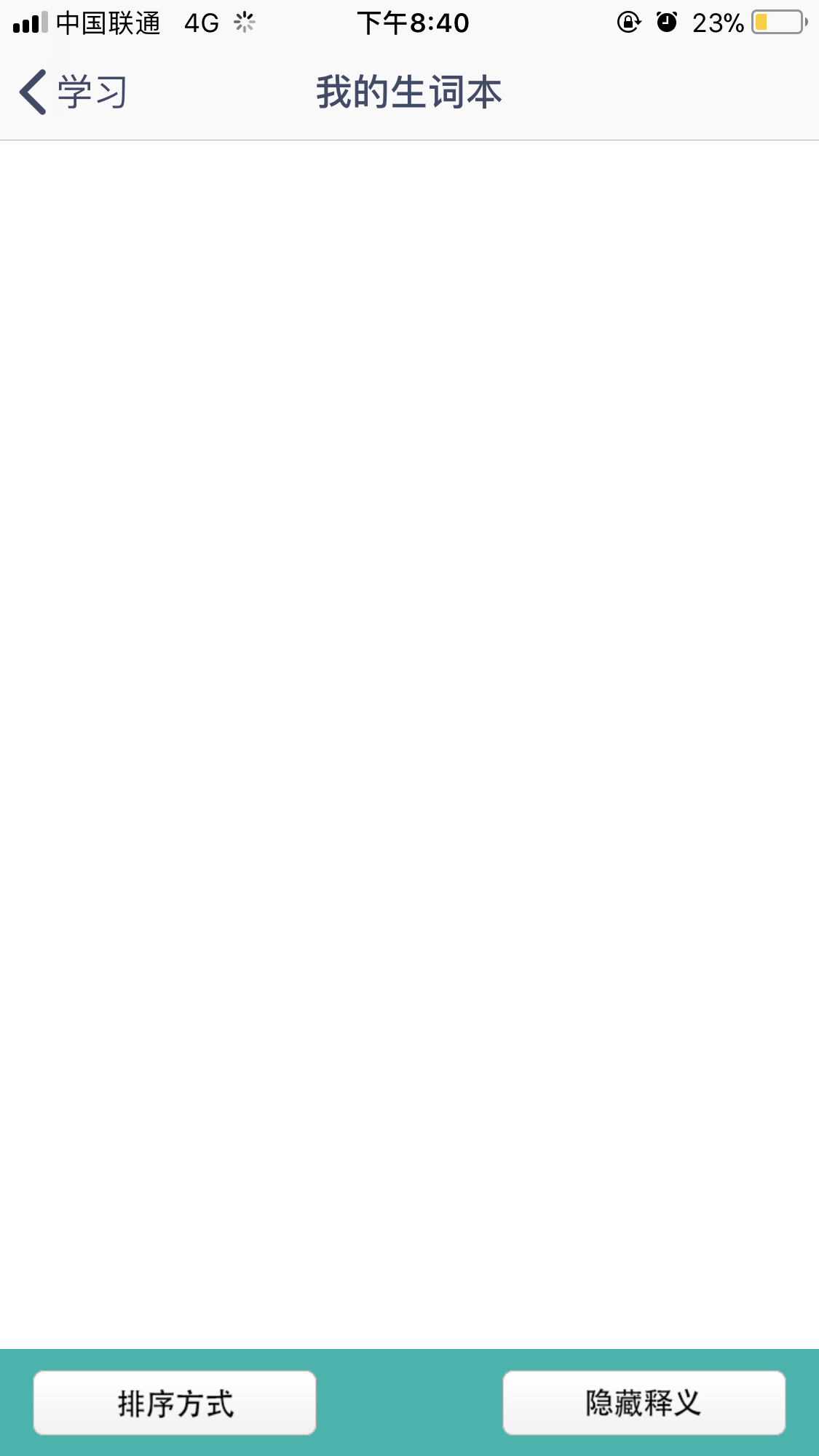 对于还在学英语的大学生来说,单词本显然是一个常用功能,因此我把单词本列在了常用功能内。单词本界面如下: