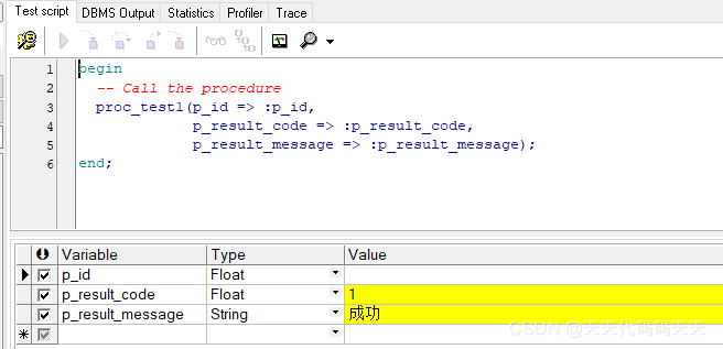 CREATE OR REPLACE PROCEDURE proc_test1(p_id IN NUMBER,