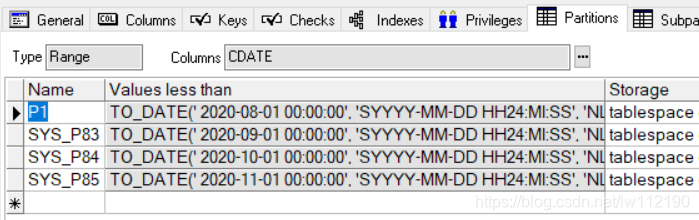partition p1 values less than (to_date('2020-08-01', 'yyyy-mm-dd'))