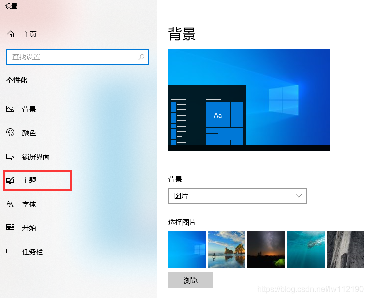 选择了个性化后会弹出设置界面,在设置中选择【主题】