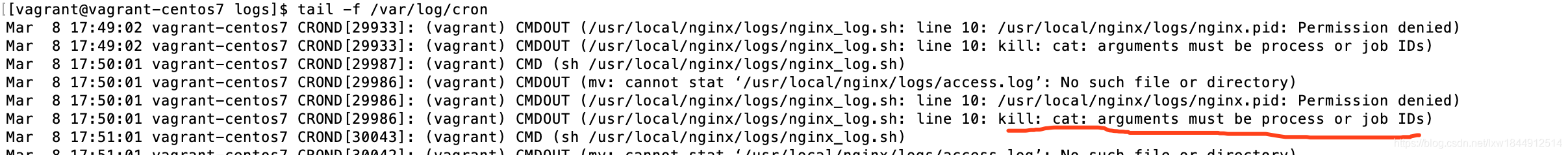 [root@vagrant-centos7 logs]# crontab -l