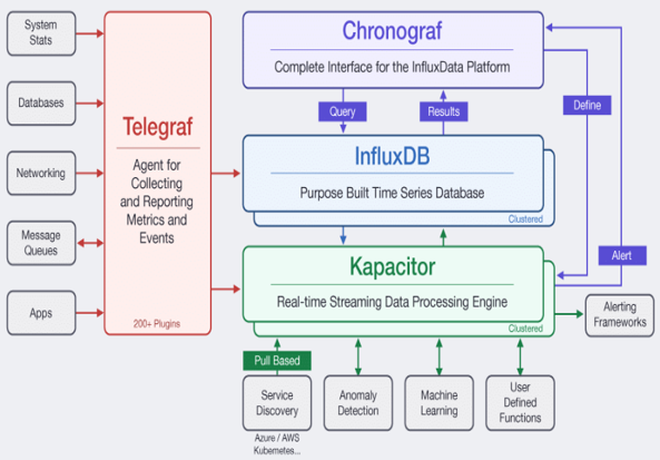 Kapacitor是一个事件处理和告警引擎,支持灵活强大的自定义功能,也支持集成对接第三系统,如,HipChat等。