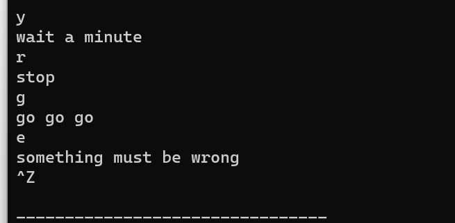 case 'y':printf("wait a minute\n");break;