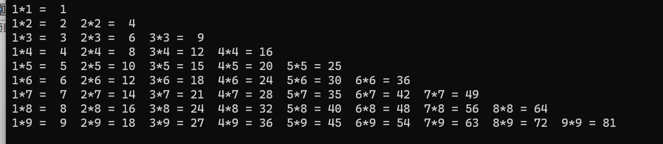 printf("%d*%d = %2d ",i,j,i*j);