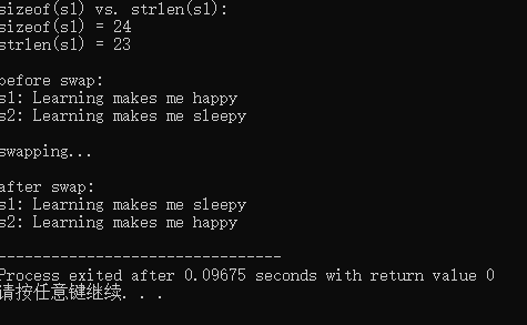 3. 交换的是指针变量s1和s2指向的地址,字符串常量在内存存储单元中没有交换