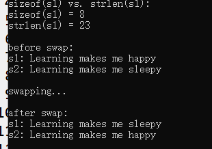 char s2[] = "Learning makes me sleepy";