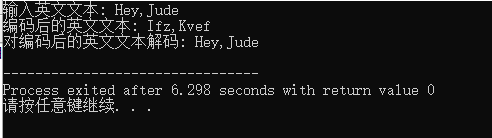 printf("对编码后的英文文本解码: ");