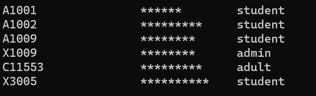 void output(Account x[], int n); // 输出账户数组x中n个账户信息,其中,密码用*替代显示