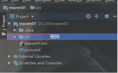 2.进入到新的maven项目中将src删除,然后新建子模块: