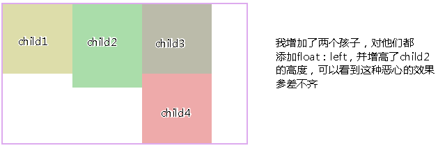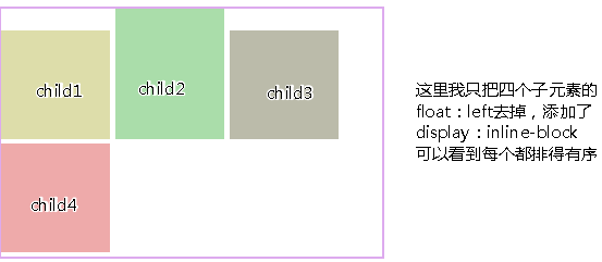 >>从图3,4可以看出浮动的局限性在于,若要元素排满一行,换行后还要整齐排列,就要子元素的高度一致才行,不然就会出现图三的效果,而inline-block就不会。