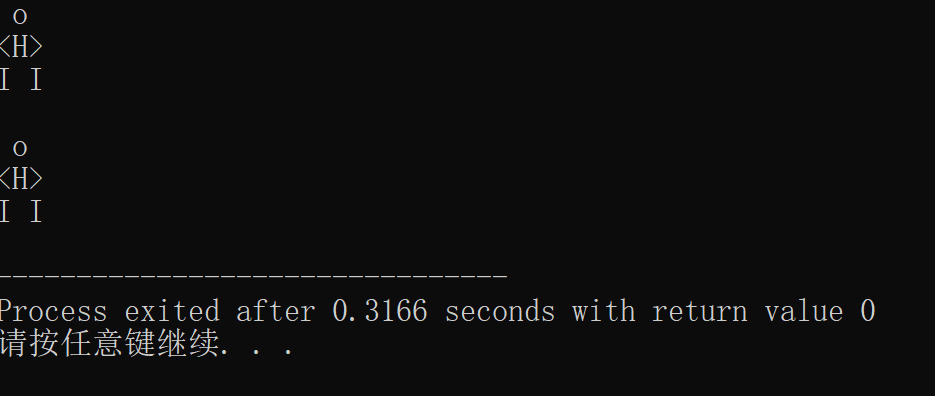 #include<stdio.h> int main() { printf(" o \n"); printf("<H>\n"); printf("I I\n"); printf("\n"); printf(" o \n"); printf("<H>\n"); printf("I I\n"); return 0; }
