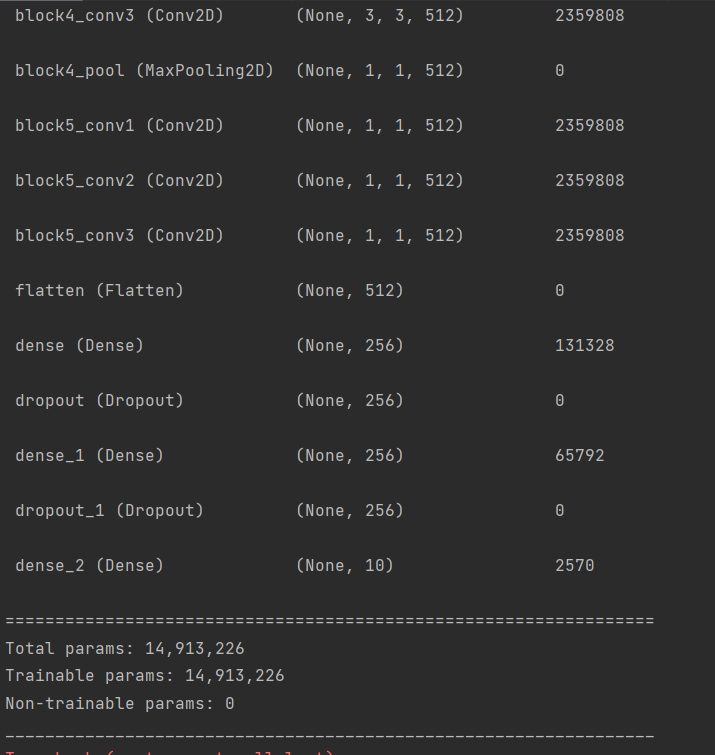 import tensorflow as tf from tensorflow import keras from tensorflow.keras import layers, regularizers import numpy as np import os import cv2 import matplotlib.pyplot as plt os.environ["CUDA_VISIBLE_DEVICES"] = "1" resize = 224 path ="train/" def load_data(): imgs = os.listdir(path) num = len(imgs) train_data = np.empty((5000, resize, resize, 3), dtype="int32") train_label = np.empty((5000, ), dtype="int32") test_data = np.empty((5000, resize, resize, 3), dtype="int32") test_label = np.empty((5000, ), dtype="int32") for i in range(5000): if i % 2: train_data[i] = cv2.resize(cv2.imread(path+'/'+ 'dog.' + str(i) + '.jpg'), (resize, resize)) train_label[i] = 1 else: train_data[i] = cv2.resize(cv2.imread(path+'/' + 'cat.' + str(i) + '.jpg'), (resize, resize)) train_label[i] = 0 for i in range(5000, 10000): if i % 2: test_data[i-5000] = cv2.resize(cv2.imread(path+'/' + 'dog.' + str(i) + '.jpg'), (resize, resize)) test_label[i-5000] = 1 else: test_data[i-5000] = cv2.resize(cv2.imread(path+'/' + 'cat.' + str(i) + '.jpg'), (resize, resize)) test_label[i-5000] = 0 return train_data, train_label, test_data, test_label def vgg16(): weight_decay = 0.0005 nb_epoch = 100 batch_size = 32 # layer1 model = keras.Sequential() model.add(layers.Conv2D(64, (3, 3), padding='same', input_shape=(224, 224, 3), kernel_regularizer=regularizers.l2(weight_decay))) model.add(layers.Activation('relu')) model.add(layers.BatchNormalization()) model.add(layers.Dropout(0.3)) # layer2 model.add(layers.Conv2D(64, (3, 3), padding='same', kernel_regularizer=regularizers.l2(weight_decay))) model.add(layers.Activation('relu')) model.add(layers.BatchNormalization()) model.add(layers.MaxPooling2D(pool_size=(2, 2))) # layer3 model.add(layers.Conv2D(128, (3, 3), padding='same', kernel_regularizer=regularizers.l2(weight_decay))) model.add(layers.Activation('relu')) model.add(layers.BatchNormalization()) model.add(layers.Dropout(0.4)) # layer4 model.add(layers.Conv2D(128, (3, 3), padding='same', kernel_regularizer=regularizers.l2(weight_decay))) model.add(layers.Activation('relu')) model.add(layers.BatchNormalization()) model.add(layers.MaxPooling2D(pool_size=(2, 2))) # layer5 model.add(layers.Conv2D(256, (3, 3), padding='same', kernel_regularizer=regularizers.l2(weight_decay))) model.add(layers.Activation('relu')) model.add(layers.BatchNormalization()) model.add(layers.Dropout(0.4)) # layer6 model.add(layers.Conv2D(256, (3, 3), padding='same', kernel_regularizer=regularizers.l2(weight_decay))) model.add(layers.Activation('relu')) model.add(layers.BatchNormalization()) model.add(layers.Dropout(0.4)) # layer7 model.add(layers.Conv2D(256, (3, 3), padding='same', kernel_regularizer=regularizers.l2(weight_decay))) model.add(layers.Activation('relu')) model.add(layers.BatchNormalization()) model.add(layers.MaxPooling2D(pool_size=(2, 2))) # layer8 model.add(layers.Conv2D(512, (3, 3), padding='same', kernel_regularizer=regularizers.l2(weight_decay))) model.add(layers.Activation('relu')) model.add(layers.BatchNormalization()) model.add(layers.Dropout(0.4)) # layer9 model.add(layers.Conv2D(512, (3, 3), padding='same', kernel_regularizer=regularizers.l2(weight_decay))) model.add(layers.Activation('relu')) model.add(layers.BatchNormalization()) model.add(layers.Dropout(0.4)) # layer10 model.add(layers.Conv2D(512, (3, 3), padding='same', kernel_regularizer=regularizers.l2(weight_decay))) model.add(layers.Activation('relu')) model.add(layers.BatchNormalization()) model.add(layers.MaxPooling2D(pool_size=(2, 2))) # layer11 model.add(layers.Conv2D(512, (3, 3), padding='same', kernel_regularizer=regularizers.l2(weight_decay))) model.add(layers.Activation('relu')) model.add(layers.BatchNormalization()) model.add(layers.Dropout(0.4)) # layer12 model.add(layers.Conv2D(512, (3, 3), padding='same', kernel_regularizer=regularizers.l2(weight_decay))) model.add(layers.Activation('relu')) model.add(layers.BatchNormalization()) model.add(layers.Dropout(0.4)) # layer13 model.add(layers.Conv2D(512, (3, 3), padding='same', kernel_regularizer=regularizers.l2(weight_decay))) model.add(layers.Activation('relu')) model.add(layers.BatchNormalization()) model.add(layers.MaxPooling2D(pool_size=(2, 2))) model.add(layers.Dropout(0.5)) # layer14 model.add(layers.Flatten()) model.add(layers.Dense(512, kernel_regularizer=regularizers.l2(weight_decay))) model.add(layers.Activation('relu')) model.add(layers.BatchNormalization()) # layer15 model.add(layers.Dense(512, kernel_regularizer=regularizers.l2(weight_decay))) model.add(layers.Activation('relu')) model.add(layers.BatchNormalization()) # layer16 model.add(layers.Dropout(0.5)) model.add(layers.Dense(2)) model.add(layers.Activation('softmax')) return model #if __name__ == '__main__': train_data, train_label, test_data, test_label = load_data() train_data = train_data.astype('float32') test_data = test_data.astype('float32') train_label = keras.utils.to_categorical(train_label, 2) test_label = keras.utils.to_categorical(test_label, 2) #定义训练方法,超参数设置 model = vgg16() sgd = tf.keras.optimizers.SGD(lr=0.01, decay=1e-6, momentum=0.9, nesterov=True) #设置优化器为SGD model.compile(loss='categorical_crossentropy', optimizer=sgd, metrics=['accuracy']) history = model.fit(train_data, train_label, batch_size=20, epochs=10, validation_split=0.2, #把训练集中的五分之一作为验证集 shuffle=True) scores = model.evaluate(test_data,test_label,verbose=1) print(scores) model.save('model/vgg16dogcat.h5') acc = history.history['accuracy'] # 获取训练集准确性数据 val_acc = history.history['val_accuracy'] # 获取验证集准确性数据 loss = history.history['loss'] # 获取训练集错误值数据 val_loss = history.history['val_loss'] # 获取验证集错误值数据 epochs = range(1, len(acc) + 1) plt.plot(epochs, acc, 'bo', label='Trainning acc') # 以epochs为横坐标,以训练集准确性为纵坐标 plt.plot(epochs, val_acc, 'b', label='Vaildation acc') # 以epochs为横坐标,以验证集