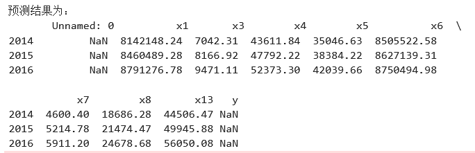 import sys sys.path.append('../code') # 设置路径 import numpy as np import pandas as pd from GM11 import GM11 # 引入自编的灰色预测函数 inputfile1 = 'C://Users//Administrator//Desktop//tmp//new_reg_data3.csv' # 输入的数据文件 inputfile2 = 'C://Users//Administrator//Desktop//data.csv' # 输入的数据文件 new_reg_data = pd.read_csv(inputfile1) # 读取经过特征选择后的数据 data = pd.read_csv(inputfile2) # 读取总的数据 new_reg_data.index = range(1994, 2014) new_reg_data.loc[2014] = None new_reg_data.loc[2015] = None new_reg_data.loc[2016] = None l = ['x1', 'x3', 'x4', 'x5', 'x6', 'x7', 'x8', 'x13'] for i in l: f = GM11(new_reg_data.loc[range(1994, 2014),i].to_numpy())[0] new_reg_data.loc[2014,i] = f(len(new_reg_data)-2) # 2014年预测结果 new_reg_data.loc[2015,i] = f(len(new_reg_data)-1) # 2015年预测结果 new_reg_data.loc[2016,i] = f(len(new_reg_data)) # 2016年预测结果 new_reg_data[i] = new_reg_data[i].round(2) # 保留两位小数 outputfile = 'C://Users//Administrator//Desktop//te//new_reg_data_GM22.xls' # 灰色预测后保存的路径 y = list(data['y'].values) # 提取财政收入列,合并至新数据框中 y.extend([np.nan,np.nan,np.nan]) new_reg_data['y'] = y new_reg_data.to_excel(outputfile) # 结果输出 print('预测结果为:\n',new_reg_data.loc[2014:2016,:]) # 预测结果展示 import matplotlib.pyplot as plt from sklearn.svm import LinearSVR inputfile = 'C://Users//Administrator//Desktop//te//new_reg_data_GM22.xls' # 灰色预测后保存的路径 data = pd.read_excel(inputfile) # 读取数据 feature = ['x1', 'x3', 'x4', 'x5', 'x6', 'x7', 'x8', 'x13'] # 属性所在列 data_train = data.iloc[0:20,:].copy() # 取2014年前的数据建模 data_mean = data_train.mean() data_std = data_train.std() data_train = (data_train - data_mean)/data_std # 数据标准化 x_train = data_train[feature].to_numpy() # 属性数据 y_train = data_train['y'].to_numpy() # 标签数据 linearsvr = LinearSVR() # 调用LinearSVR()函数 linearsvr.fit(x_train,y_train) x = ((data[feature] - data_mean[feature])/data_std[feature]).to_numpy() # 预测,并还原结果。 data['y_pred'] = linearsvr.predict(x) * data_std['y'] + data_mean['y'] outputfile = '../te/new_reg_data_GM22_revenue.xls' # SVR预测后保存的结果 data.to_excel(outputfile) print('真实值与预测值分别为:\n',data[['y','y_pred']]) fig = data[['y','y_pred']].plot(subplots = True, style=['b-o','r-*']) # 画出预测结果图 plt.title('财政收入真实值与预测值对比图--number-3025') plt.show()