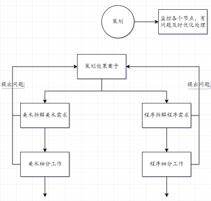 在成员拆解完需求后,程序应该有了自己的一套框架体系,美术也敲定了工作流程,项目管理方式也确定下来。进行几次问题迭代后就进入了正式开发阶段。