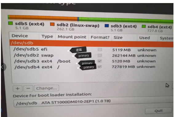 接下来进入ubuntu安装流程,步骤基本可参考下面“U盘安装服务器Ubuntu18.04系统”这个视频,如果我们只有一块磁盘,那么分区不要参考,因为视频中的up有两块盘,按up的来可能卡在这一步。可以参考我的配置,分区顺序尽量保持一样,EFI分区第一个分下去,否则可能会有想不到的bug出现