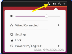 - 按一般情况,准备一根网线,一端连接主机的网口,一端连接校园网的网口(一般在桌子下面),或者路由器的LAN口,桌面右上角就可以显示一个符号,如下所示