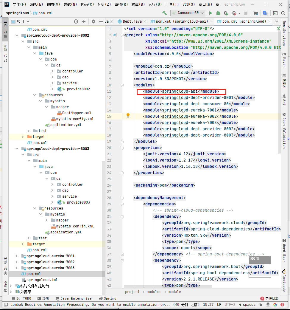 SpringCloud父工程(Project)下初次带着三个子模块(Module)