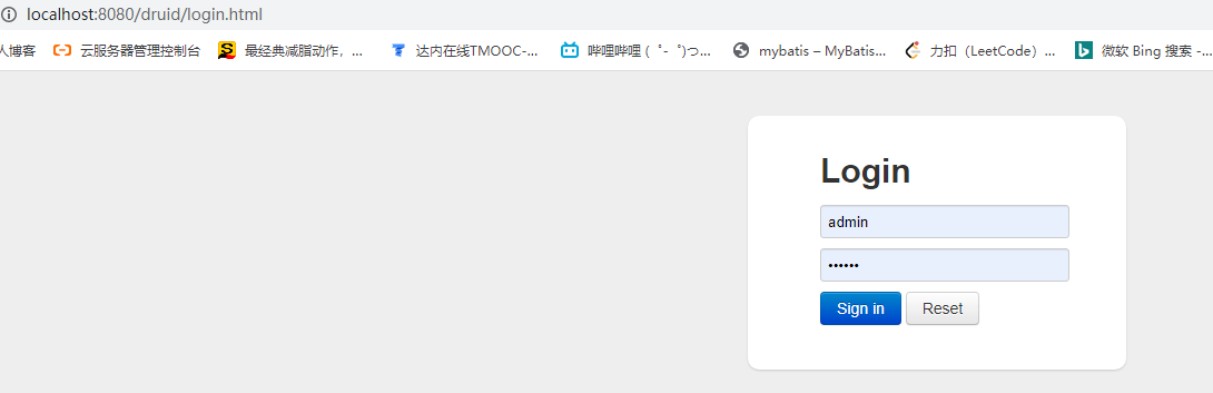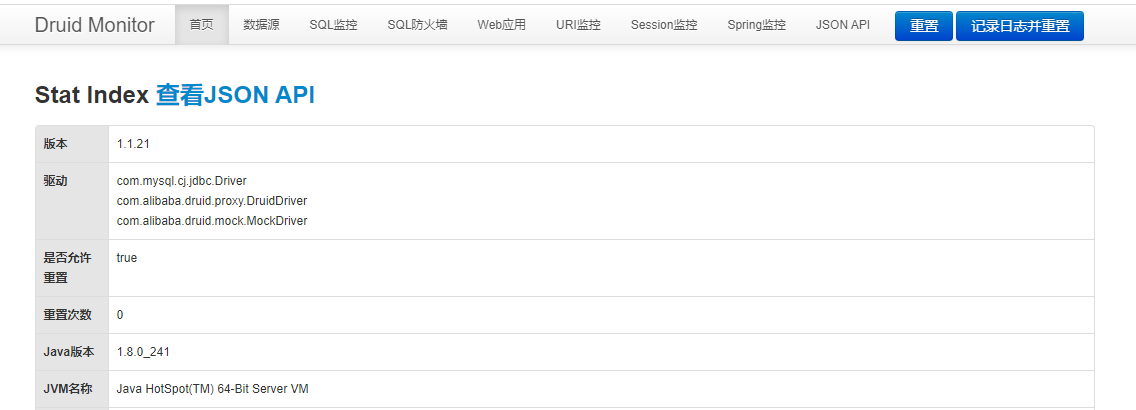 配置完毕后,访问:http://localhost:8080/druid/login.html