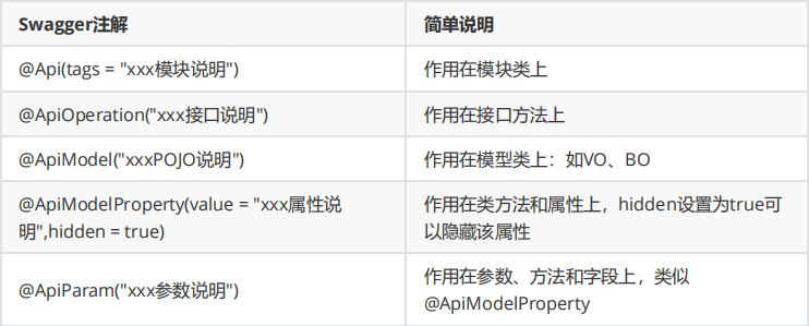 Swagger的所有注解定义在io.swagger.annotation包下