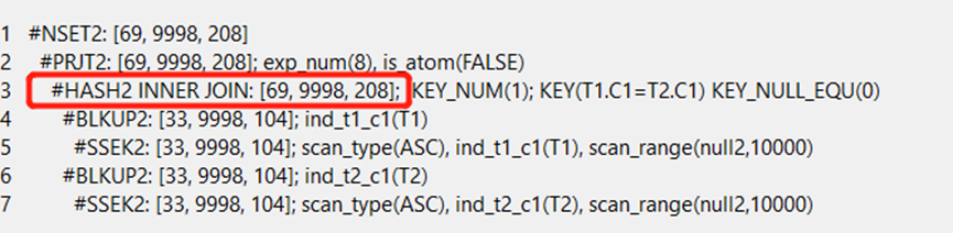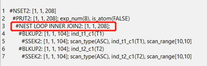 - 关联列等值过滤条件为等值时,将会使用nest loop inner join方式表连接