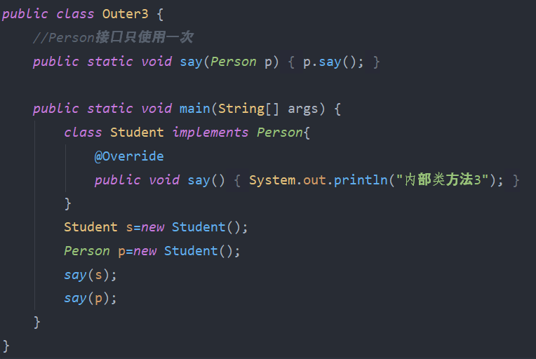 - 内部类对象创建结束后,可无条件访问外部类属性和方法