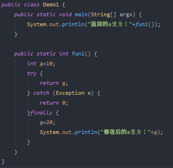- retrun在返回值之前有个准备过程,finally在此期间执行
