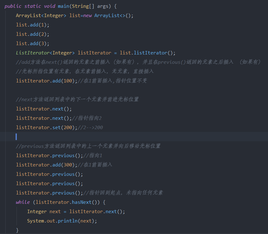 //add方法在next()返回的元素之前插入(如果有),并且在previous()返回的元素之后插入 (如果有)
