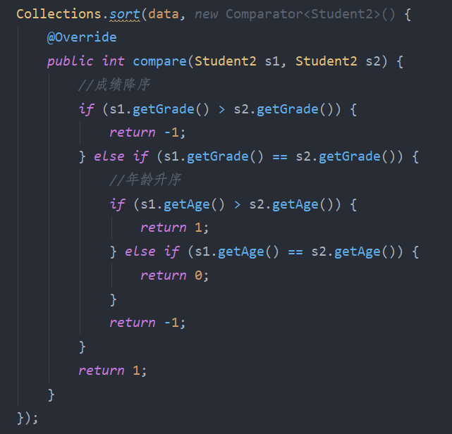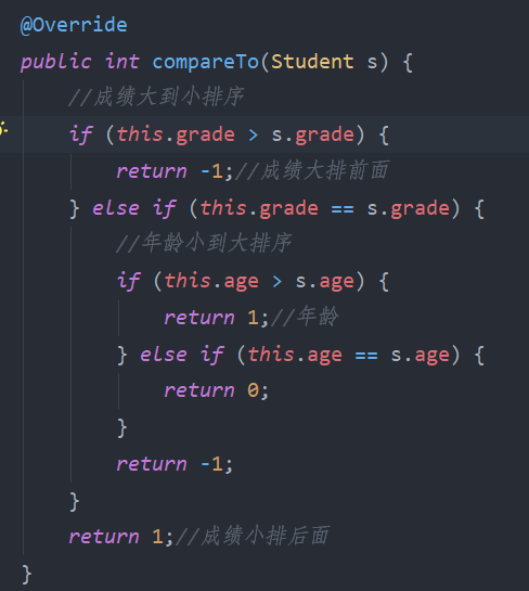 - 顺序:s1,s2,...所以返回-1,s1.getGrade() > s2.getGrade()