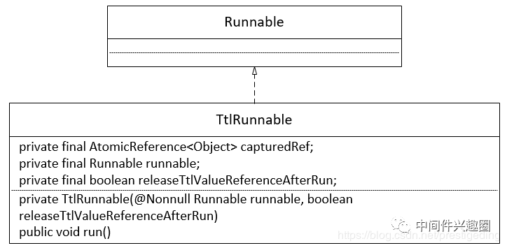 1private TtlRunnable(@Nonnull Runnable runnable, boolean releaseTtlValueReferenceAfterRun) {