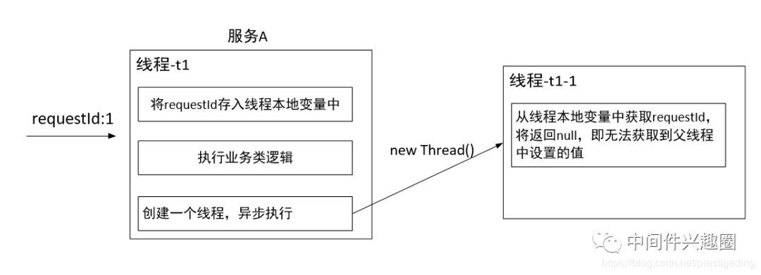 由于ThreadLocal在父子线程交互中子线程无法访问到存储在父线程中的值,无法满足某些场景的需求,例如链路跟踪,例如如下场景: