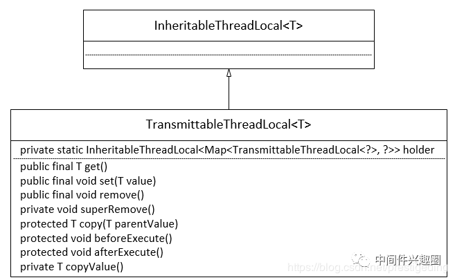 温馨提示:从这里看出TransmittableThreadLocal的静态属性holder的用处吧,请重点理解holder的属性类型为:InheritableThreadLocal, ?>>。