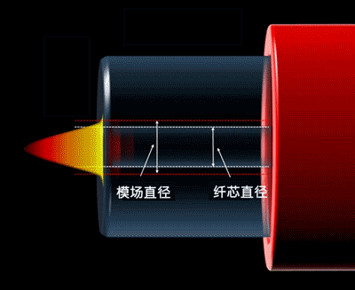 大部分光集中在纤芯,部分进入包层,这一更宽的分布称为模场直径。