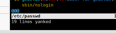 3./etc/passwd一共有19行,输入快捷键19yy复制所有行
