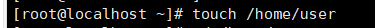 1.因为事先查看家目录下并没有user文件,所以输入touch /home/user创建
