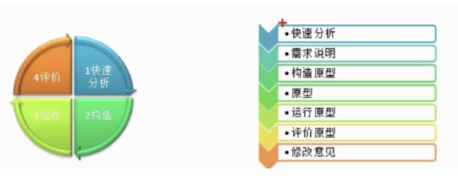 快速原型模型:在开发真实系统之前,构造一个原型,在该原型的基础上,逐渐完成整个系统的开发工作。