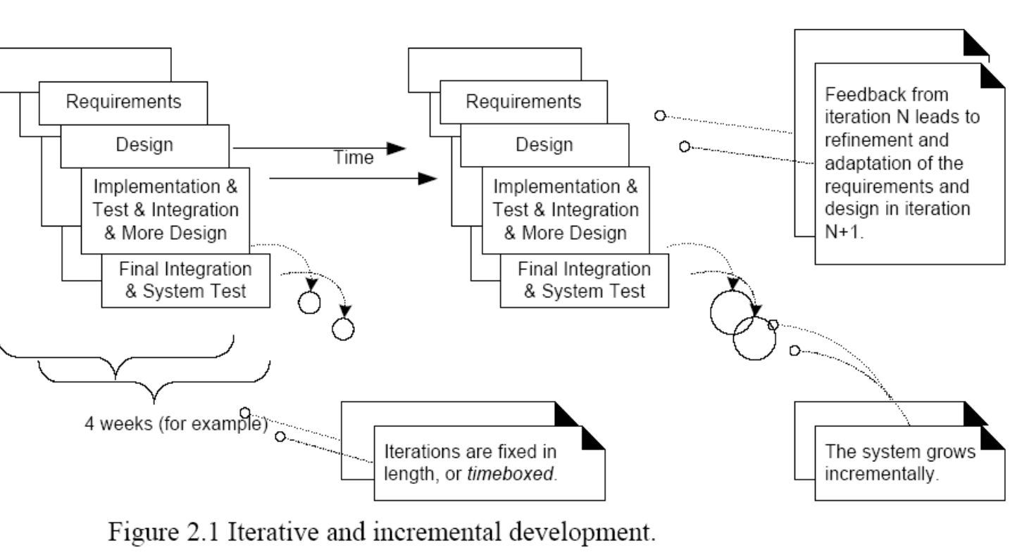 迭代式开发:整个开发工作被组织为一系列的短小的、固定长度(如3、4周)的小项目,被称为一系列的迭代。
