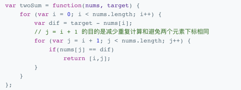 使用两层循环,外层循环计算当前元素与target 之间的差值,内层循环寻找该差值,若找到该差值,则返回两个元素的下标。