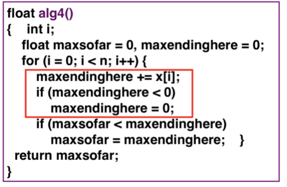 输出:输入向量的任何连续子向量中的最大和。假定输出的最大和为非负数。