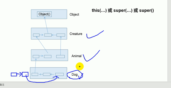 注意:要明确一下,虽然调用了多个构造器,但是只有一个对象,即为new的的对象,因为只是调用不等于new了一个对象,。