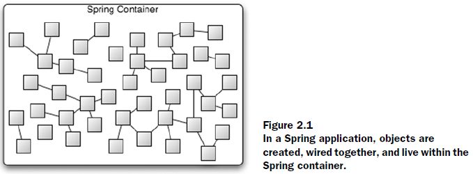 看到加粗部分,再联想到2.1那个图,inside a building(building对应图中的Spring Container), piece of equipment(对应图中的类),pass through(wire不就有点这个意思吗?)。