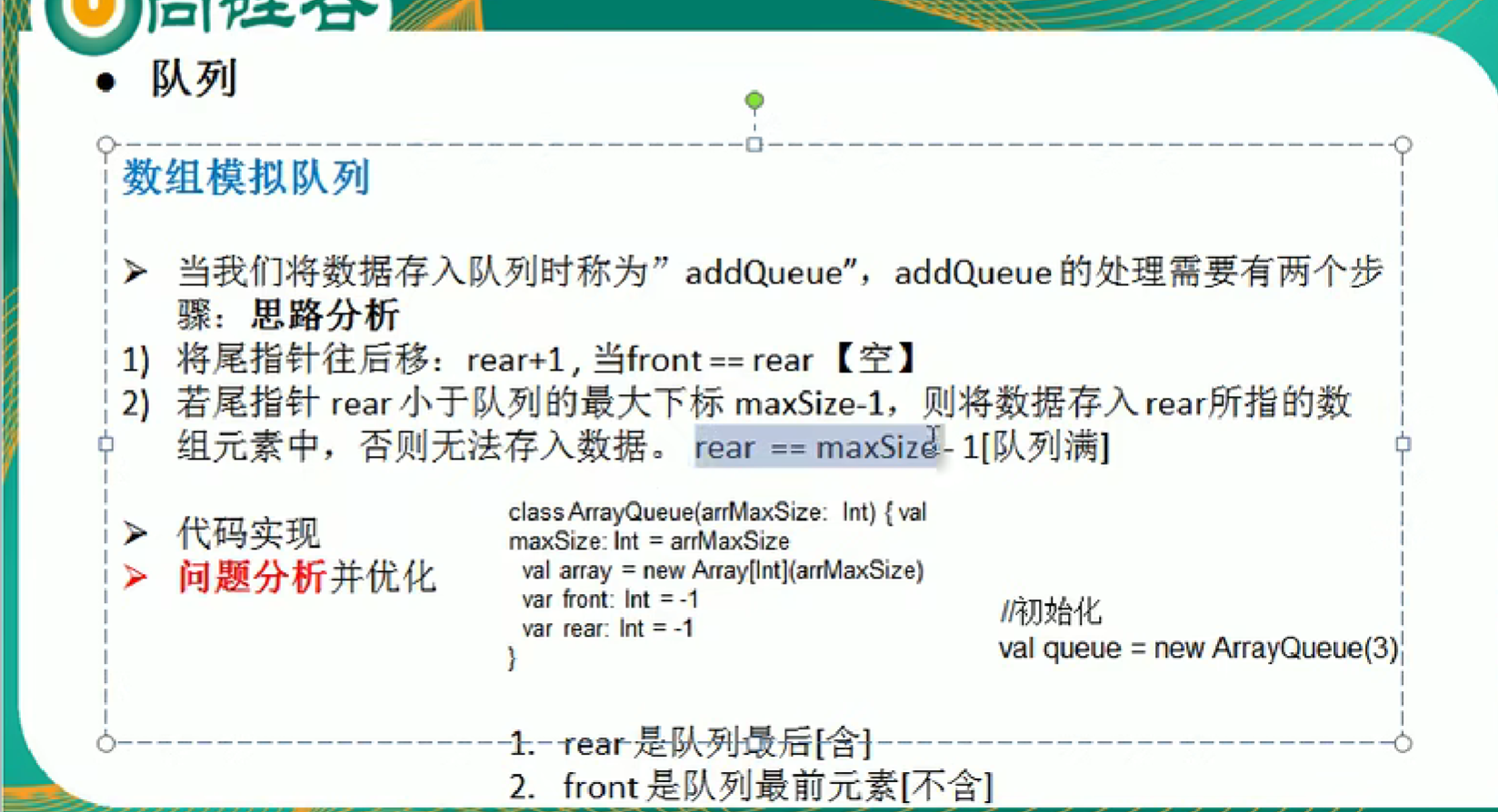 数组模拟队列的不足之处:目前数组使用一次就不能使用,用环形队列可以解决