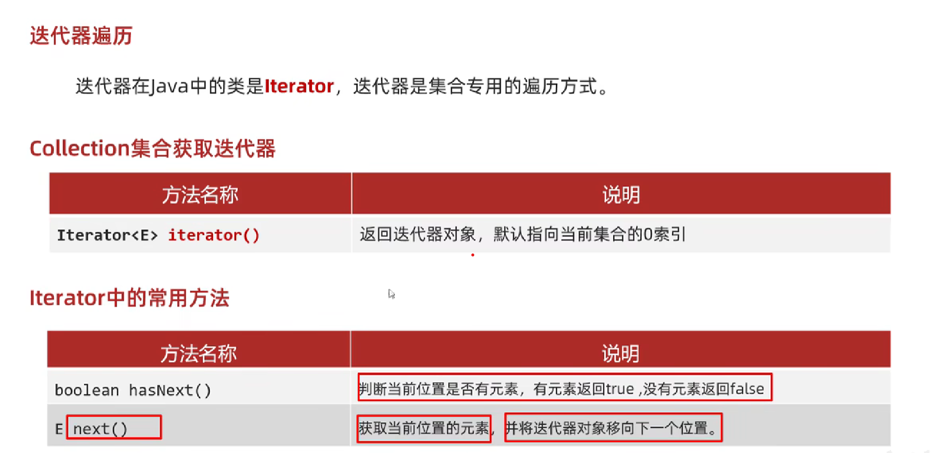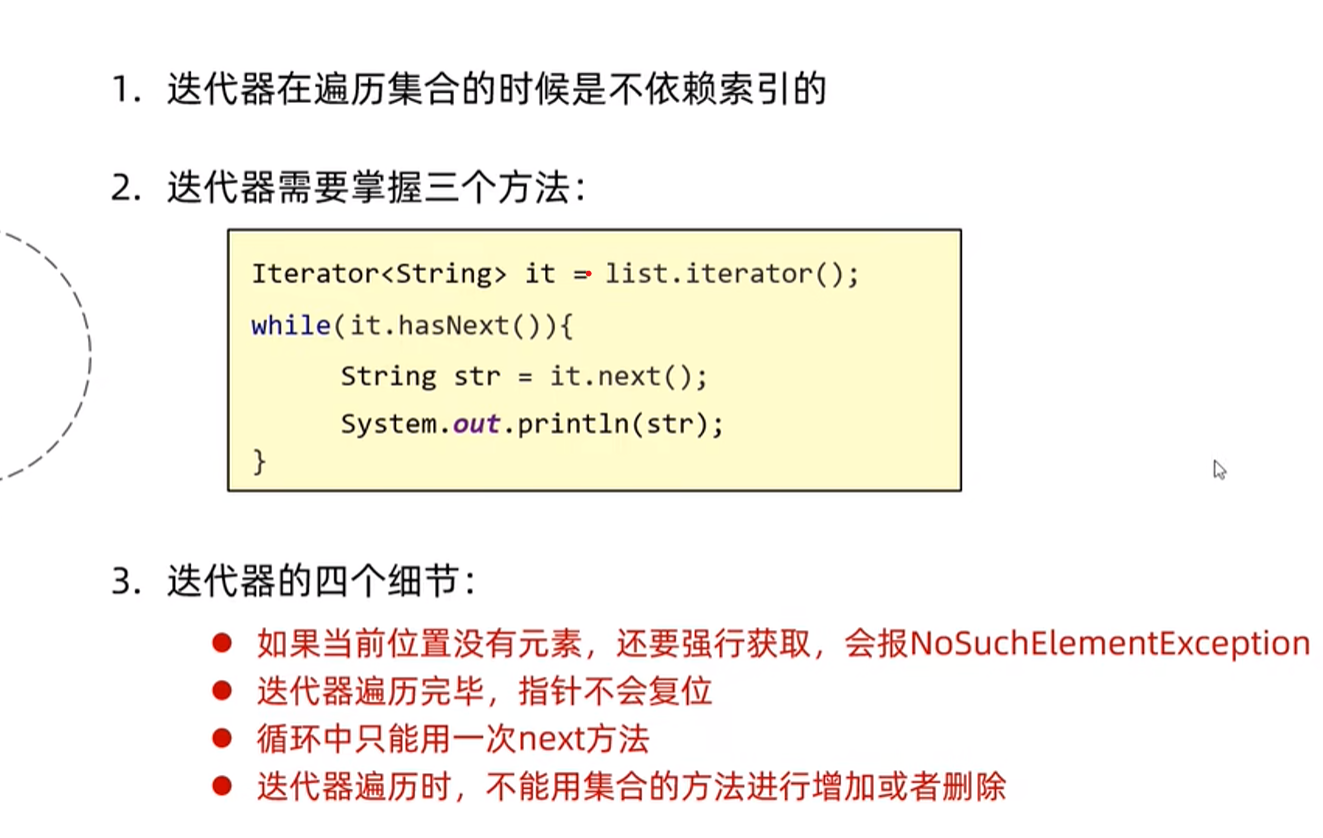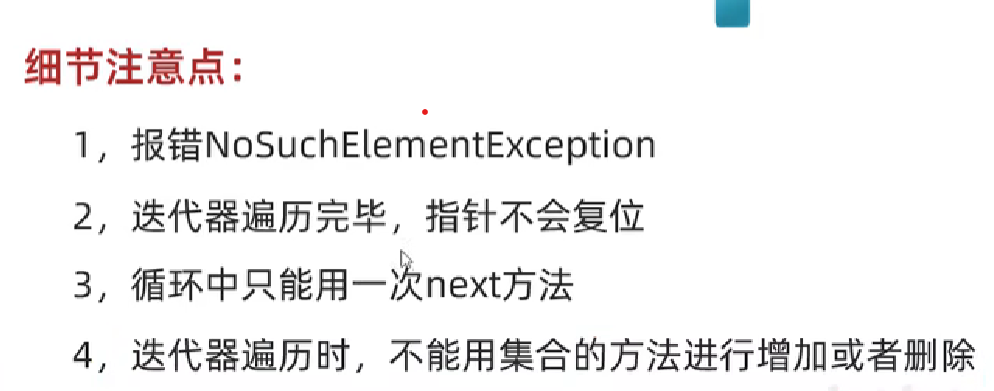 - 迭代器遍历时,不能用集合的方法进行添加或者修改,如果需要删除,我们可以使用迭代器里面的remove方法