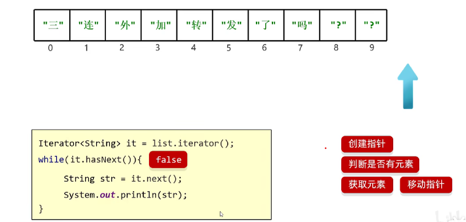 //迭代器对象,迭代器就好比是一个箭头,默认指向集合的0索引处